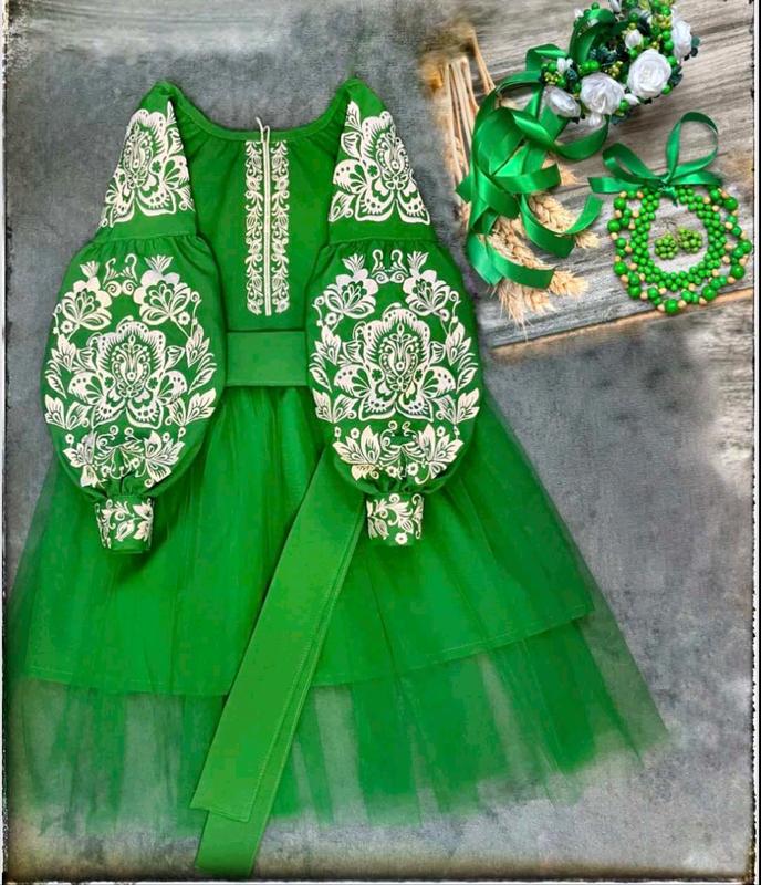 Сукня вишита вишиванка для дівчинки зелена фатін