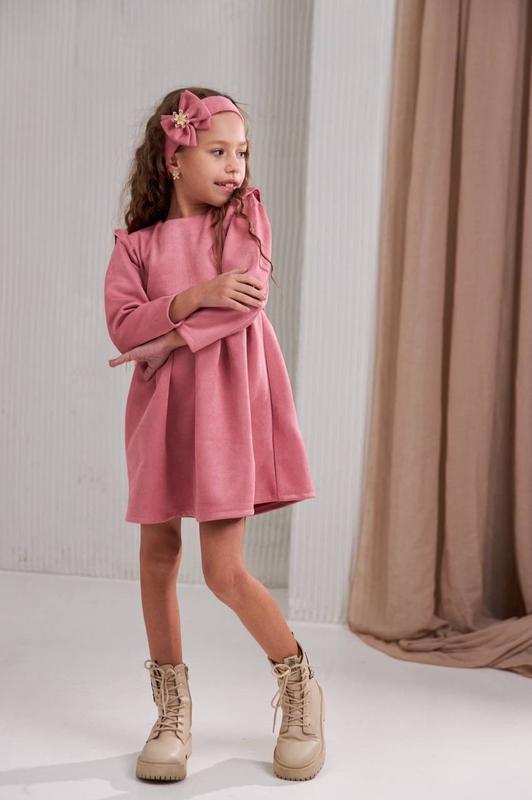 Опис Про товар: - Гарна сукня вільного крою; - Округла горловина; - Довгий рукав; - Середня довжина; - Доповнена застібкою блискавкою на спинці; - В комплект входить пов'язка голову з бантиком; - Декорована вшитимс поясом на талії; - Дуже приємна тканина. Матеріал: мікровелюр. Склад: 100% поліестер. Заміри в см: Розмір 92: ДВ - 48, ДП - 24, ДР - 31, ПОГ - 27. Розмір 98: ДВ - 50, ДП - 24, ДР - 33, ПОГ - 27. Розмір 104: ДВ - 53, ДП - 25, ДР - 33, ПОГ - 28. Розмір 116: ДВ - 58, ДП - 27, ДР - 36, ПОГ - 30. ДВ - довжина виробу. ДП - довжина плечей. ДР - довжина рукава від плеча. ПОГ - півобхват грудей.