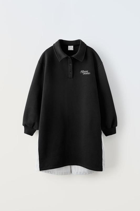 Сукня з коміром поло та довгими рукавами. Контрастна деталь у смужці позаду. Утеплене на флісі , мʼяке та приємне на дотик.