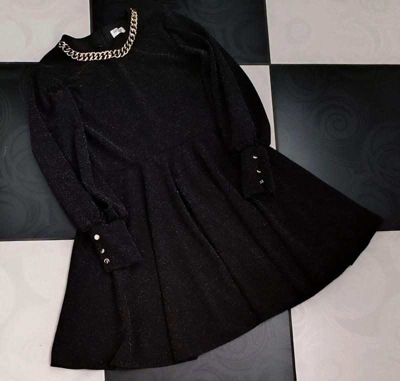 В наявності! Стильна сукня для дівчат. Прикрашено ланцюжком, пояс в комплекті. Тканина - люрекс, приємна до тіла. Заміри: 140 довжина - 74см, напівобхват грудей - 39см, рукав від плеча - 46см. 146 довжина - 77см, напівобхват грудей - 40см, рукав від плеча - 50см. 152 довжина - 80см, напівобхват грудей - 41см, рукав від плеча - 52см.