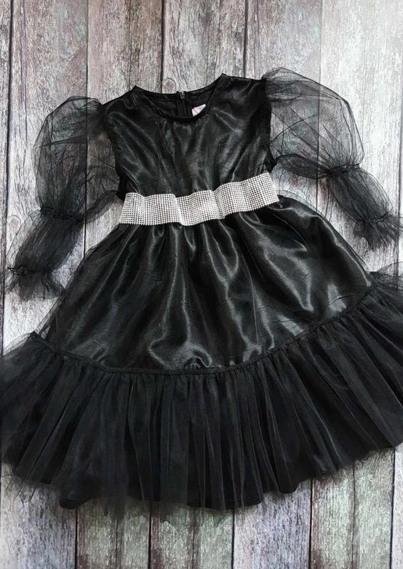В наявності! Сукня для принцес! Тканина - атлас м'якенький +фатин. Пояс на резинці. Попереду пояс прикрашений серебряним оздобленням. Рукав - 3/4 По спинці застібається на блискавку. Якість відмінна! 128 довжина - 65см, напівобхват грудей - 34см, рукав від плеча - 34см.