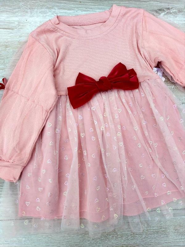 Матеріал рубчик,м'який,добре тягнеться два шари фатина + підкладка, шифоновий бантик приклеєний більші розміри маломірять Заміри: довжина від плеча до пояса / довжина повна / напівобхват грудей/ рукав від плеча 80р 16/45/28/29 100р 17/47/29/30 110р 18/51/30/31 120р 18,5/56/32/32