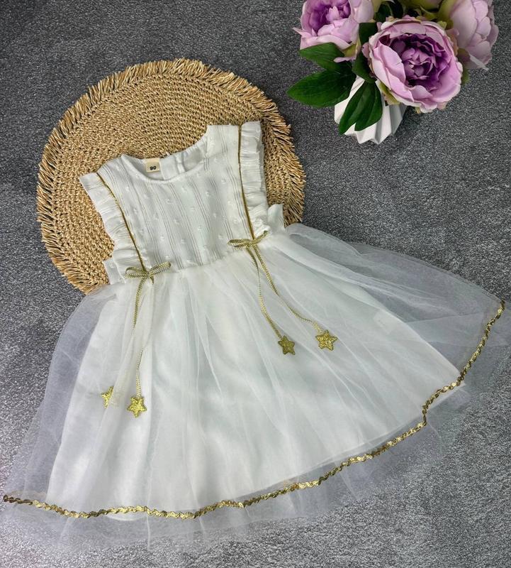 Знизу на бавовняній підкладці Прикрашена золотою вишивкою та зірочками Дуже гарно сидить на дитині Гарна якість! 90 - довжина 50 см, шир 25 см 100- довжина 54 см, шир 26 см 110- довжина 59 см, шир 28 см 120- довжина 62 см, шир 29 см 130- довжина 68 см, шир 31 см 140- довжина 74 см, шир 33 см