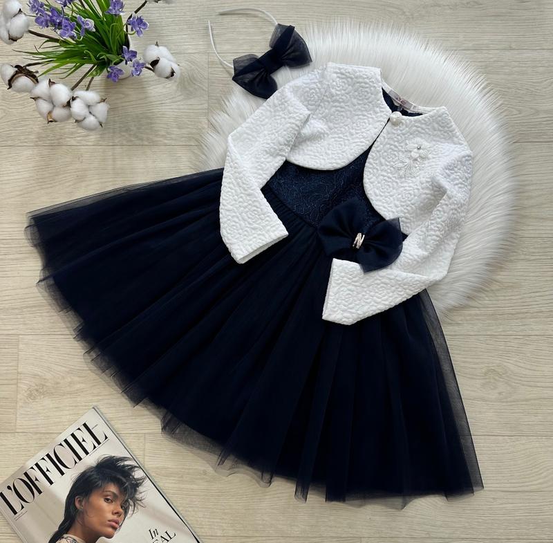 Невероятного красоты платье с болеро и обручем в комплекте ❤️❤️❤️ Красивая, пышная, украшенная изысканными деталями 🥰😍🥰 Четыре слоя фатина 😍 Пишний бант позаду 🎀 Застежка- потайная молния 🥰 Болеро на пуговице и украшен цветком 🤩 Обруч с бантиком в тон платья 🎀 Есть подкладка 👌🏻 Ткань: Платье: верх- кружево/ низ- фатин с подкладкой 💞 Болеро: французский трикотаж 🌸 Производитель: Украина 🇺🇦 ЗАМІРИ +/-1-2см!!! ▪ ▪р.128- Платье: длина 76см/ длина юбки 46см/ ПОГ 35см/ ширина талии 32см. Болеро: длина 24см/руав 46см