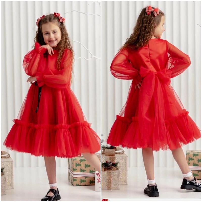Сукня для принцес! Тканина - королівський атлас, євросітка. По спинці застібається на блискавку. Рукав короткий по лікоть. колір - ЧЕРВОНИЙ. Заміри: 122 довжина - 71см, напівобхват грудей - 34см. 128 довжина - 74см, напівобхват грудей - 34см. 134 довжина - 78см, напівобхват грудей - 36см. 140 довжина - 83см, напівобхват грудей - 38см 146 довжина - 87см, напівобхват грудей - 40см