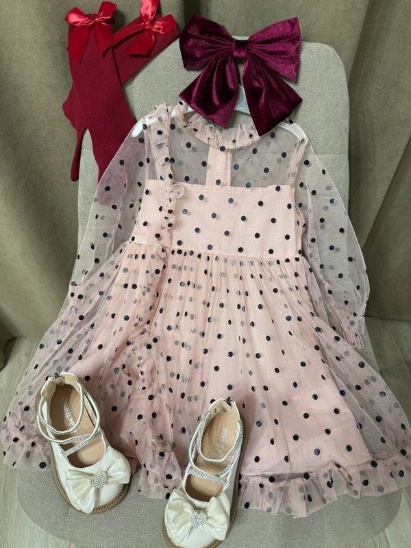 До тіла бавовняна підкладка. Зверху євросітка в горошок , рукавчики на резинці. Виглядає вживу дуже гарно. Розміри в наявності: (92см)-довжина 54см, ширина 28см, довжина рукава від плеча 34см (100см)-довжина 57см, ширина 29см, довжина рукава від плеча 36см (104-110см)-довжина 59см, ширина 30см, довжина рукава від плеча 37см