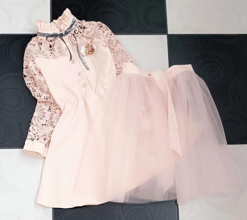 🧡В наявності 🧡 Шикарна сукня з фатиновою спідницею на завязках тканина костюма,фатін і брошка знімаються на рукавах є манжети, застібається на гудзики рекомендую!!! Ціна 755 грн заміри сукня-довжина/рукав/пог-довжина спідниці 122р-65/46/32-47 128р-67/47/33-48 134р-70/48/34-50 +-2см ▪️N-20