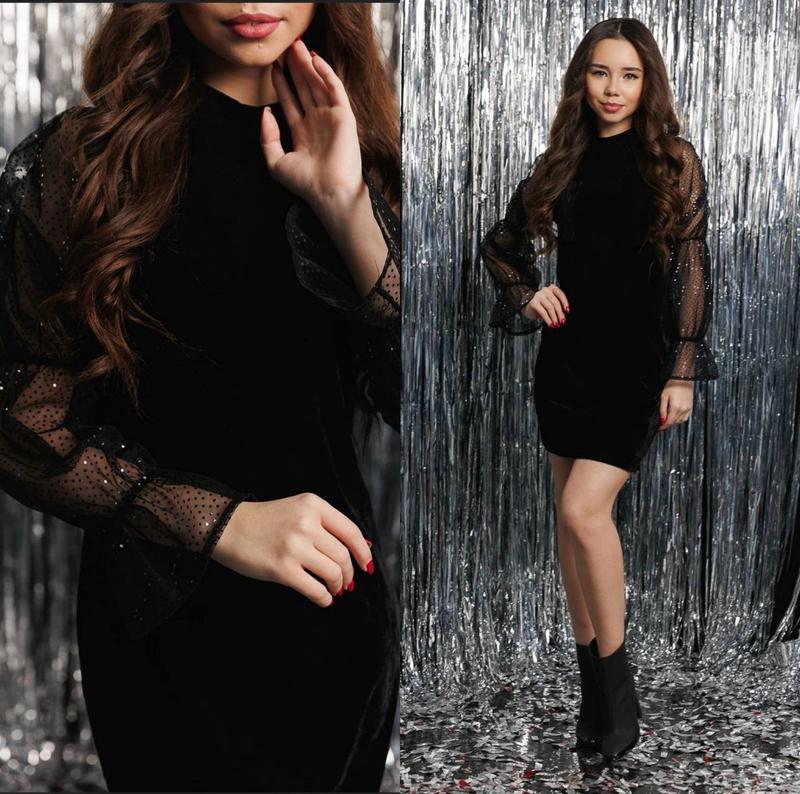 В наявності 💙💛 Ціна 865 грн Маленьке чорне плаття, яке має бути у кожної красуні 💗 Ніжне поєднання оксамитових відтінків 😍 Тканина бархатний велюр, рукава сітка флок оксамит ЗАМІРИ: Довжина/пог/рукав від плеча 140 - 69/34/57 146 - 73/35/60 152 - 76/36/62 158 - 79/37/64 164 - 83/39/67 ▪️N-16