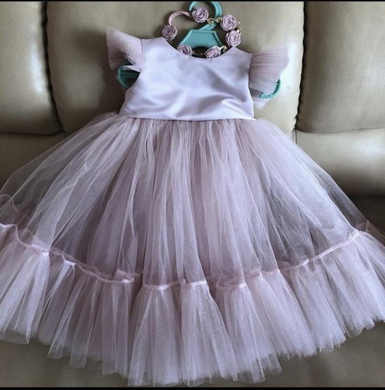 Продам пишну святкову сукню для дівчинки на вік орієнтовно на 2 рочки, пудрового кольору (на фото здається більш блідою, вживу яскравіша, рожева), шилась на замовлення, стан ідеальний, одягнена була один раз, всього на годинку часу. В подарунок повязка на голову.