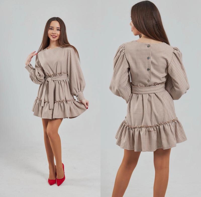 арт 4292 сукня тканина костюмкаʼʼ гусячя лапкаʼʼ примна на дотик по спинці та на манжетах кнопки рукав ліхтариком з пояском ПОВНОМІРНІ Зріст/довжина/пог/рукав від горловини похибка+-2см 146-152/70/36/53-2шт 152-158/73/37/55-1шт Тан