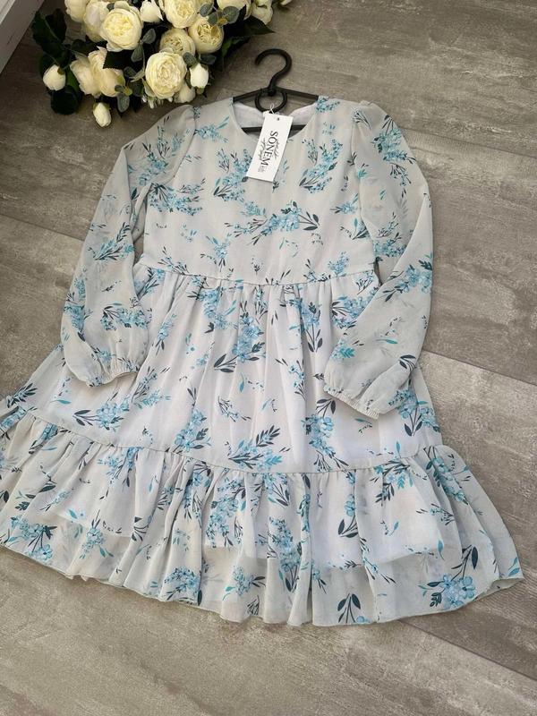 Д/с Новинка🛍️ Неймовірно легка сукня для красунь 🌺 🌺Шифонова сукня на підкладці з батисту На рукавчиках резинка По спинці потаємна змійка Розмір: довжина/ пог / рукав від плеча 134-69/33/46 140-71/35/49 146-76/36/51 158-83/38/56