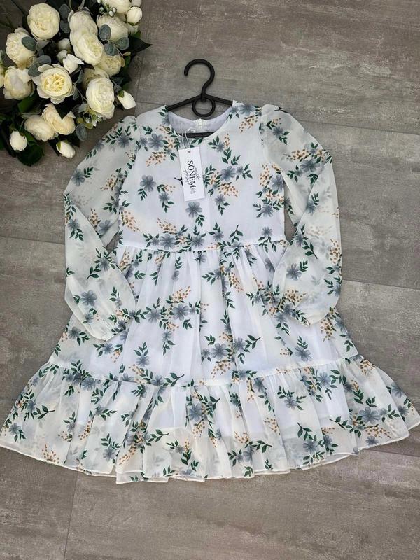 Д/с Новинка🛍️ Невероятно легкое платье для красавиц 🌺 🌺Шифоновое платье на подкладке из батиста На рукавчиках резинка По спинке потайная молния Размер: длина / пог / рукав от плеча 134-69/33/46 140-71/35/49 152-81/37/54