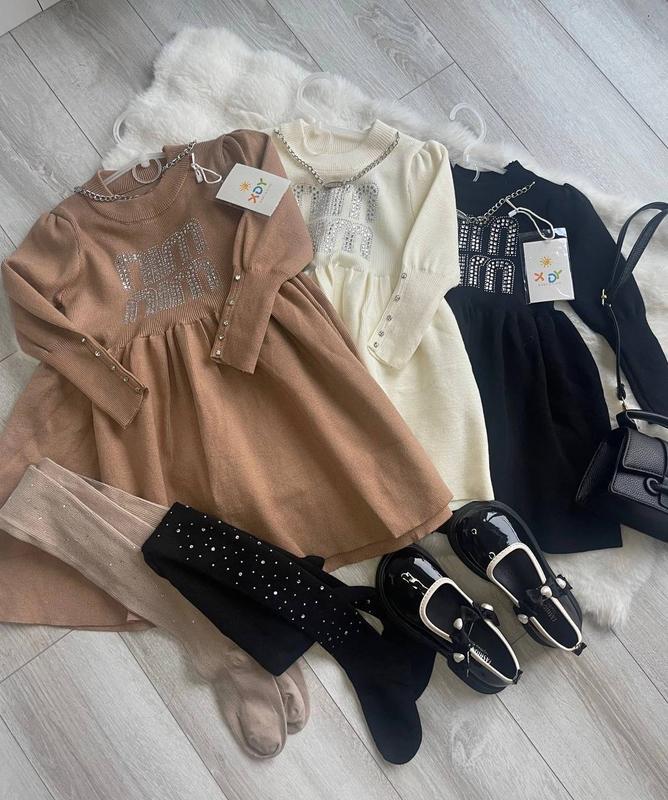 Новинка Люкс сегмент! Сукня з прикрасою: зʼємна цепочка і написом в блискучи стрази Тканина трикотаж натуральна, мʼяка , приємна до тіла Плотна машинна в‘язка. Розмір 110, 120 ціна - 965 грн Розмір 130, 140, 150 ціна - 1000 грн Колір білий 110- 3 шт, 120-3 шт, 130-3 шт, 140-2 шт, 150-1 шт Колір чорний : 110- 1 шт, 120-1 шт, 130-1 шт, 150-2 шт Колір беж : 110- 2 шт, 130-1 шт, 150- 1 шт Заміри: 110-довж.50 см, шир під руками 30 см, рукав від шва плеча 31 см 120-довж.51 см, шир під руками 31 см, рукав від шва плеча 35 см 130-довж.58 см, шир під руками 32 см, рукав від шва плеча 37 см 140-довж.62 см, шир під руками 34 см, рукав від шва плеча 41 см 150-довж.65 см, шир під руками 35 см, рукав від шва плеча 45 см