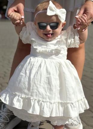 Сукня на дівчинку, одягали 1 раз на свято, пінетки, пов'язка та сукня в наборі, розмір 74. Ціна в магазині 1700грн. Стан 10/10 покупкою будете задоволені. Не плям нічого немає.