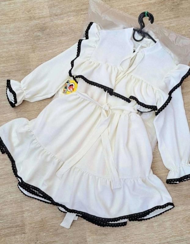 Нежное платье для девочек В поясе резинка, поясок в комплекте. Ткань: креп-жатка, хорошего качества. Замеры: 134 длина - 74см, полуобхват груди - 39см, рукав от плеча - 45см. 140 длина - 76см, полуобхват груди - 40см, рукав от плеча - 48см. 146 длина - 78см, полуобхват груди - 42см, рукав от плеча - 50см. 152 длина - 82см, полуобхват груди - 43см, рукав от плеча - 55см. Мс