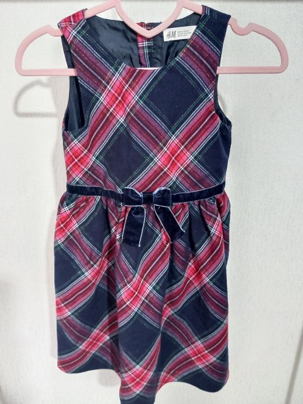 Вишукана сукня для дівчинки. Декорована оксамитовим паском з бантиком. 🎀 Тканина м'яка приємна на дотик, щільна, гарно тримає форму, дуже гарний яскравий принт в клітинку з люрексом. Сукня виглядає святково. Від популярного бренду HM По бірці на 8-9 років, ріст 134 Виготовлено в Індонезія Стан ідеальний