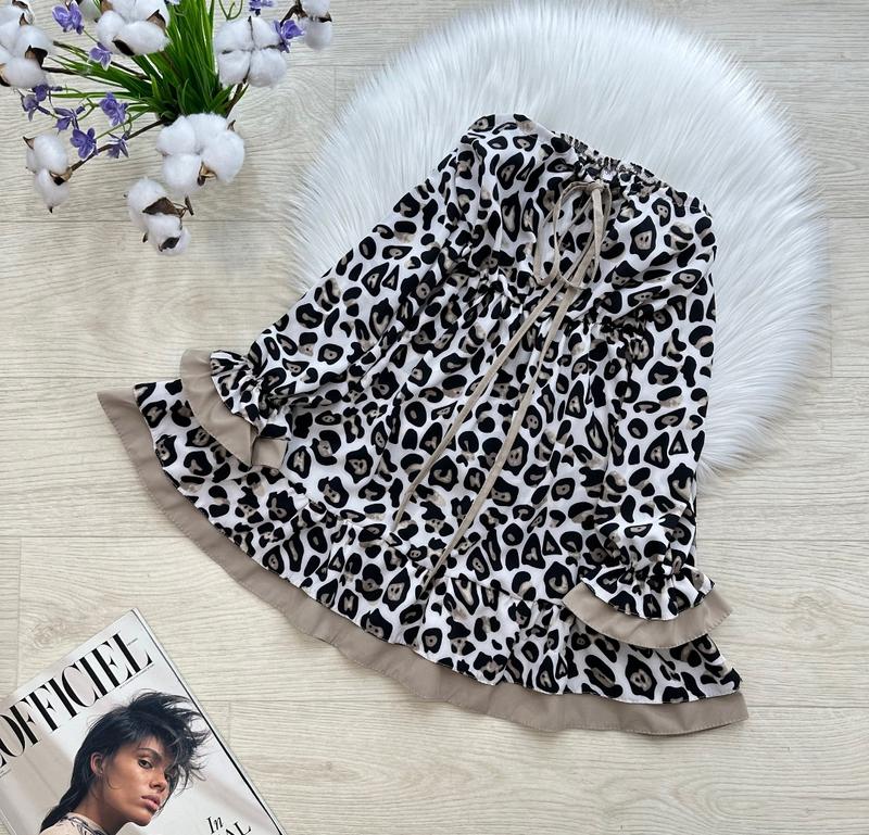 Стильова повітряна сукня ЛЕО 🤩🐆🤩🔝🔝🔝 Обʼємні рукава, на резиночці 💛 Попереду виріз регулюється кулісками 👌🏻 В поясі резиночка😌 Тканина: софт 🤎 Виробник: Україна 🇺🇦 ЗАМІРИ ⤵ +/- 1-2см!!! р.146- довжина сукні від плеча 75см/ рукав від плечового шва 58см/ ПОГ 35см/ довжина спідниці 45см р.152- довжина сукні від плеча 77см/ рукав від плечового шва 62см/ ПОГ 37см/ довжина спідниці 46см