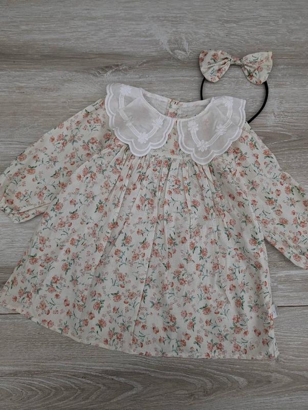 мила бавовняна сукня з обручем в комплекті матеріал бавовна вільного крою застібається на ґудзики на рукавах резинки ЗАМІРИ довжина/напівобхват грудей /рукав від плеча 80р 45/31/28 90р 48/33/30 100р 50/34/33 110р 53/35/35 120р 56/37/37