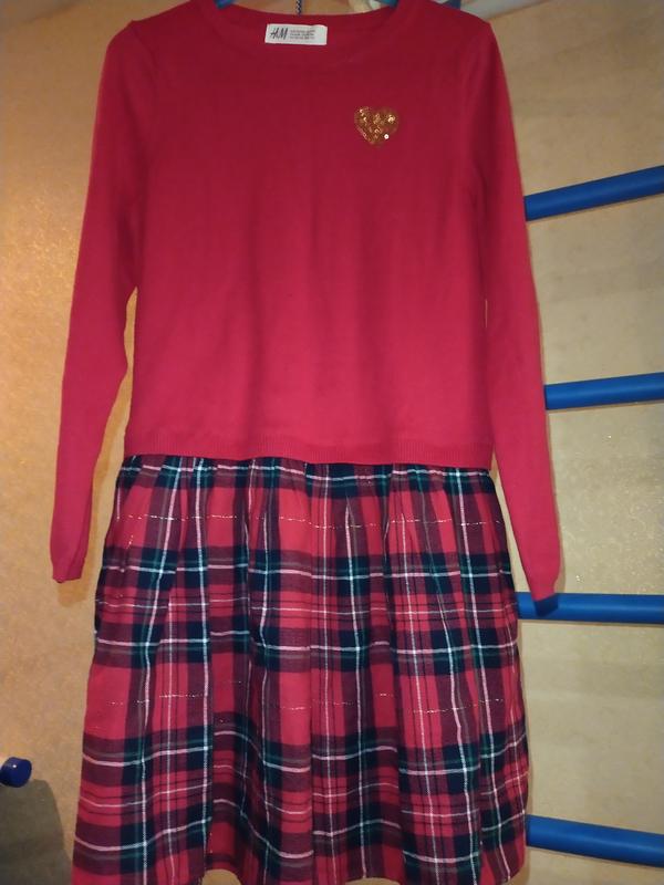 Платье в красивом состоянии, вверх трикотажное, низ-ткань в клетку с люрексовой нитью, Длина 68 см Длина рукава 47.5 см