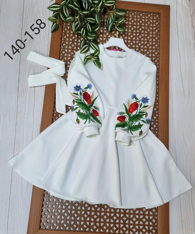 ️В НАЯВНОСТІ 💞Нежное платье для девочки Тканина костюмка На рукавах настоящая вышивка "маки"🥰 Пояс в комплекті КАЧЕСТВО ЧУДОВА!!! РЕКОМЕНДУЮ!!! 💋140-длина 75, пог 36,рукав 49 💋146-длина 78, пог 37,рукав 51 💋152-длина 81,пог 39,рукав 53 💋158-длина 85,пог 40,рукав 54 +-2 см