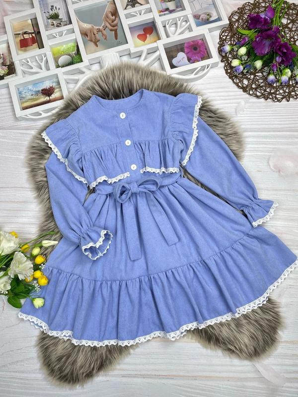 В наявності 💙💛 Ціна 755 грн Нарядне стильне плаття для красунь 💗 Тканина вельвет, зав'язується під поясок, спереду оздоблено гудзиками, ззаду застібається на блискавку Заміри: довжина/пог/рукав від плеча 116 - 63/30/39 122 - 66/31/44 128 - 69/33/47 134 - 72/35/49 ▪️N-16