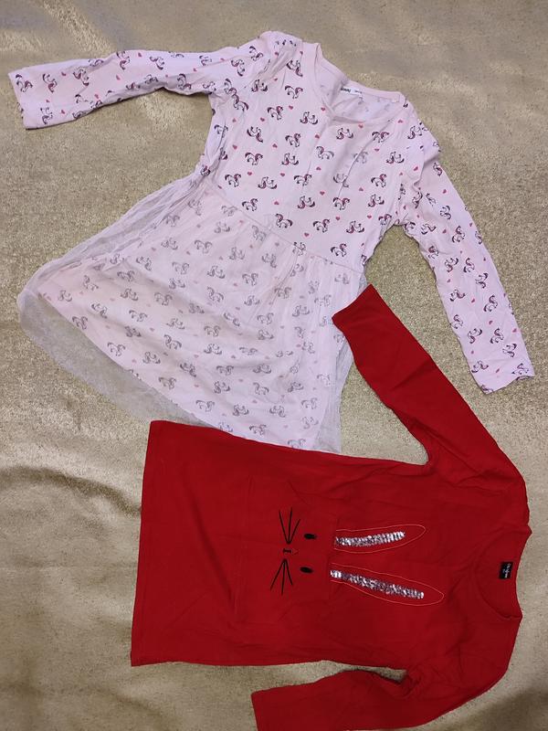 довжина червоного 61 см,рукав від плеча 41 см,пог36см,рожеве sinsay довжина 65 см,рукав від плеча 44 см,пог38 см,ціна за два плаття
