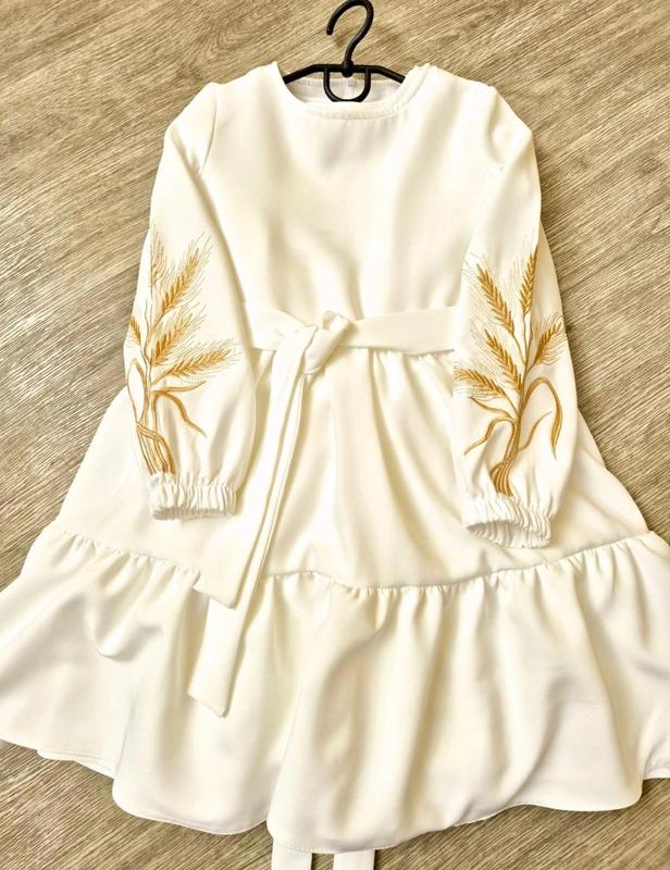 Ніжна сукня з вишивкою для красунь 💗 Застібається по спинці на блискавку, зав'язується під поясок тканина костюмка барбі КОЛІР МОЛОЧНИЙ Заміри : Довжина/пог/рукав від плеча 116 - 60/31/40 - 1 122 - 65/33/44 - 1 Ян