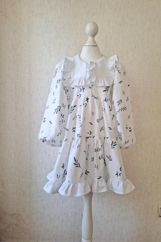 🌿 О модели: Ткань: Теплая хлопковая фланель - нежная, приятная к телу, идеально подходит для прохладной погоды. Дизайн: Элегантный фасон с многоуровневыми воланами, длинными рукавами и изысканным воротничком с рюшами. Застежка: Может быть выполнена на пуговицах или кнопочках - на ваш выбор. Цвет: Белый с нежным зеленым принтом. ❗ В настоящее время в наличии размер: 116. 🌸 Можно повторить данную модель на размеры от 86 до 134 Цена зависит от размера:👇 Размеры: 86 92 98 - 750 грн Размеры: 104, 110, 116 - 850 грн Размеры: 122, 128, 134- 950 грн