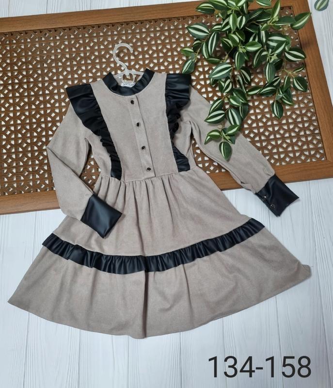 Стильна і модна сукня, тканина замш діагональ в поєднанні з еко шкірою, рукавчик застібається на ґудзик РЕКОМЕНДУЮ 👌 146р- довжина 79, рукав 53, пог 34 152р- довжина 82, рукав 56, пог 35 +-2 см 👉За Безпечну оплату уточнюйте ⚠️Через кнопку КУПИТИ тількі по повній оплаті на картку, тому не тисніть її, до уточнення деталей 🚚Нова пошта, є наложка з передоплатою 🚛 Укрпошта- +5грн пакування (укрпоштою наложки немає ❗️) По оплаті і доставці уточнюйте додатково, до купівлі! Повернення нема, робіть свій вибір обдуманно. Оглядайте товар у відділенні, претензії з дому не розглядаються! конв