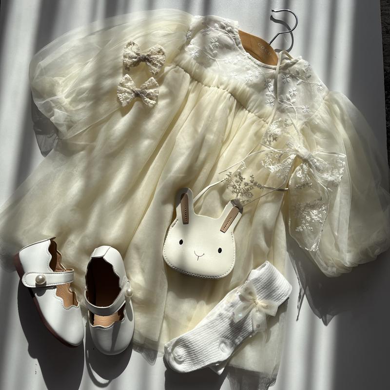 Нова фатинова легенька сукня, у розмірах 1р, 2р, 3р, 4р, 5р, 6р. Колір айворі. Є підкладка. Аксесуари та взуття теж є у розмірах.