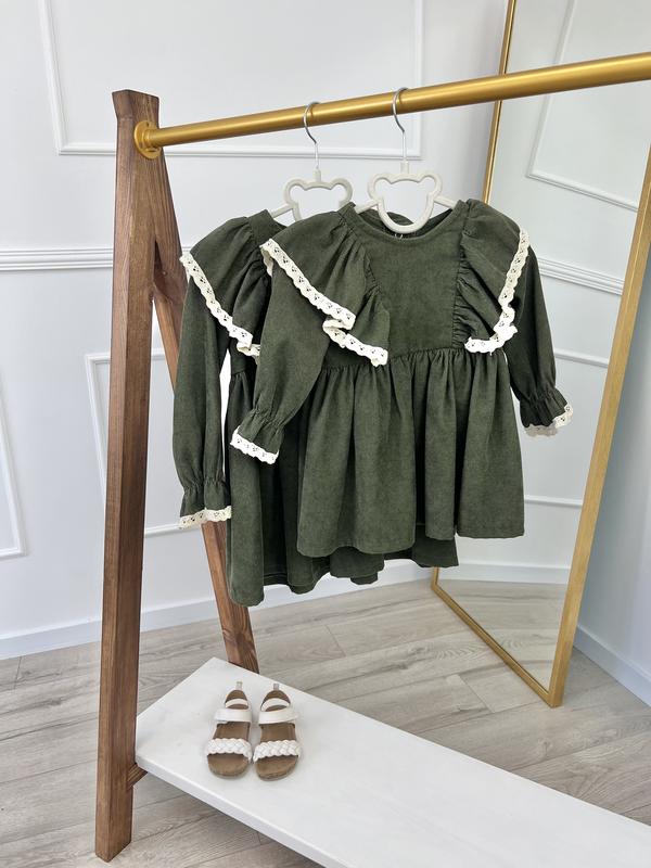 Вишукана сукня з мікровельвету. Оздоблена молочним мереживом. Дуже практична та стильна модель. Тканина якісна, цупка, практично не минеться. Сукня гарно сідає. Зручна для дитини. Одягали 1 раз. Стан без нюансів. Розмір 80. Повномірний. Усі заміри за потребою надаю.
