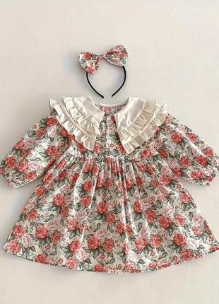 Сукня в квітковий принт Розмір 3-4 рочки Тканина гарно прасується! Обруч в комплекті