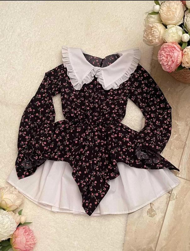 арт85 В НАЯВНОСТІ💙💛 Стильна сукня для красунь💗 Тканина софт Прикрашена комірцем По низу біла тканина трикотаж, надає романтичності образу Заміри: довжина\пог\рукав 128-134р - 67/40/50 164-170р - 78/46/55 Ян