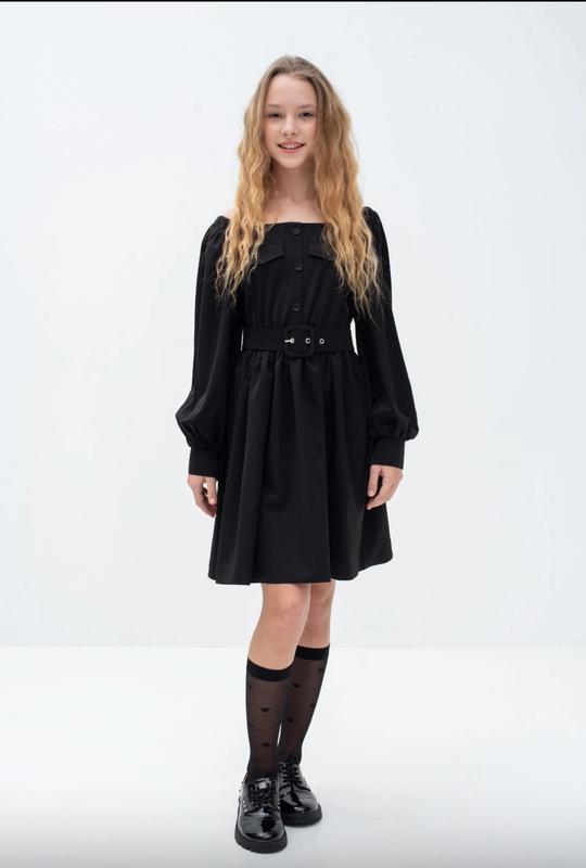 Стильна сукня для модниць По переду гудзики декоративні. Поясок в комплекті. Тканина- костюмна. Заміри: 140 загальна довжина - 75см, довжина від заднього вирізу - 69см, рукав - 52см, напівобхват грудей - 36см. 146 загальна довжина - 80см, довжина - від заднього вирізу - 75см, рукав - 55см, напівобхват грудей - 39см. 152 загальна довжина - 85см, довжина від заднього вирізу - 77см, рукав - 58см, напівобхват грудей - 41см. 158 загальна довжина - 91см, довжина від заднього вирізу - 83см, рукав - 63см, напівобхват грудей - 45см. Мс