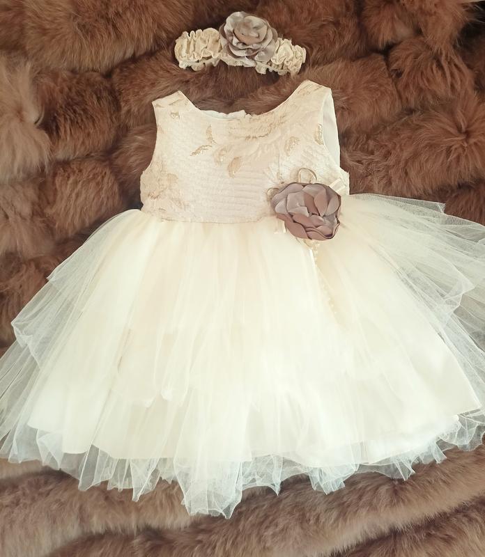 Продам сукню з пов'язкою на головку в ідеальному стані. Одягали лише один раз на день народження для фото.Розмір 80.