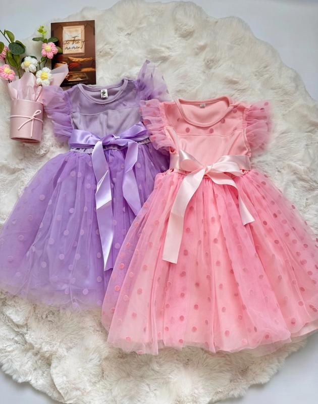 Нарядна сукня для дівчинки з фатином і атласним паском Ідеальний вибір для особливих моментів чебур ✔ Натуральні матеріали – верх виконаний з бавовни, що забезпечує м'якість і комфорт. ✔ Повітряний фатин – пишний низ зі з двох шарів фатину додає об'єму та елегантності. ✔ Короткі рукавчики з фатином – легкі, ніжні, створюють ефект легкості. ✔ Атласний пасок у комплекті – підкреслює талію та додає вишуканості. ✔ Ідеальний фасон – зручний крій, що дозволяє дитині вільно рухатися. Заміри: р.90 - довжина 45 см, ширина 24 см р.100 - довжина 49 см, ширина 26 см