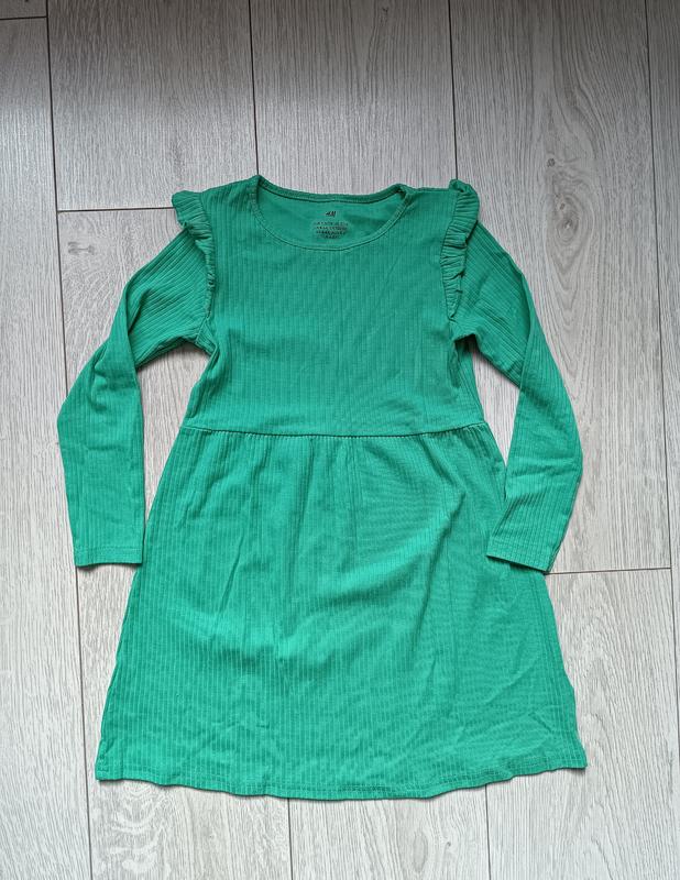 Гарна зелена яскрава сукня H&M 4-6р в рубчик, тягнеться Заміри та додаткові фото зроблю Нова