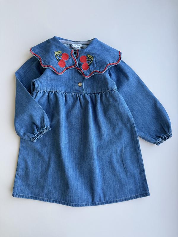 Джинсова сукня із вишитими вишеньками, застібається на 3 ґудзика, на рукаві еластична горловина, відповідає розміру Розміри 🌾2-3 🌾3-4 🌾4-5 🌾5-6 🌾7-8 🏷️750 грн Заміри 2-3: рукав 33/40, довжина 55, ширина 29 3-4: рукав 34/41, довжина 56, ширина 30 4-5: рукав 35/42, довжина 59, ширина 31 5-6: рукав 37/45, довжина 63, ширина 33 7-8: рукав 39/47, довжина 70, ширина 34