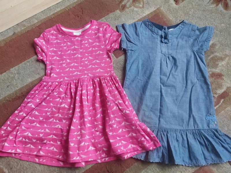 гарненькі платтячка дівчинці у відмінному стані на зріст 98-104см рожеве нове, трикотажне, F&F, довжина 53см, ширина 27см, 100грн джинсове на підкладці д.53см, ш.29.5см, 70грн