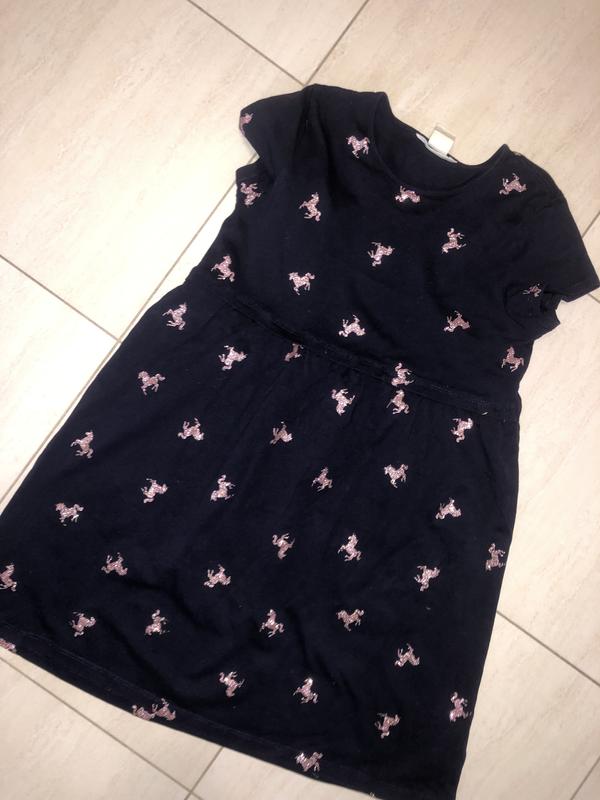 Темно-синя сукня у блискучі рожеві єдиноріжки , котон. На вік 7-9 років , дивитись заміри.