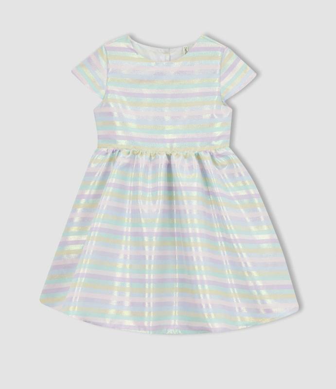 Літня сукня у смужку для дівчинки Завдяки сріблястим смужкам підійде для святкової події На підкладці На спинці застібається на кнопки