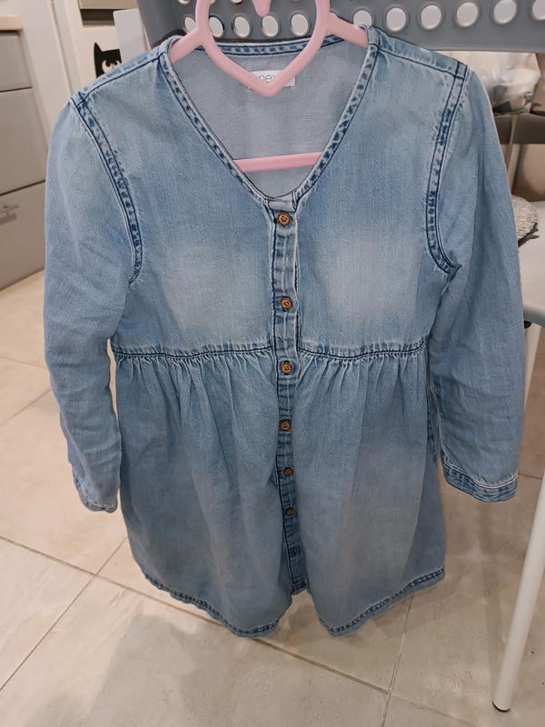 Сукня джинсова, стильна. На зріст 110 см, заміри всі на фото. Є не значні сліди носіння, на фото показала, в ціні врахувала.