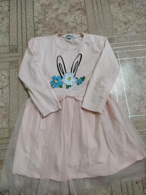 ніжне весняне/літнє плаття для дівчинки. довжина 59 см, довжина рукава 34,5 см, від шиї 41 см. пог 30 см. без дефектів і плям. ніжна фатинова юбка вносить свою святковість.