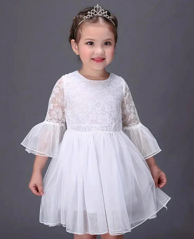 🌹дуже красива ошатна сукня🌹 Верх - мереживо три шари фатину, бавовняна підкладка застібка змійка ⚠колір білий | рукав 3/4 ЗАМІРИ довжина від плеча до пояса/ довжина повна/ ширина по грудях ✅110р 22/55/27 ✅120р 24/60/29 ✅130р 26/65/31 ✅140р 27/70/32 похибка +-1см НАЯВНІСТЬ 110р 5шт 120р 5шт 130р 5шт 140р 5шт