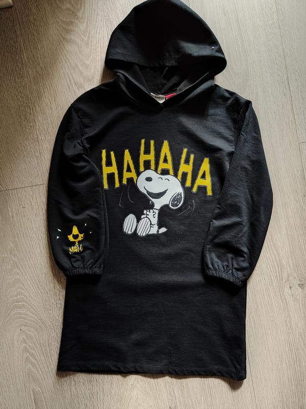 Платье худи для девочки 8-9 лет 128-134 см с капюшоном в очень красивом состоянии. Тканина: двонитка. Цвет: черный. Ширина по грудях: 41см Длина 67 см Длина рукава 53 см