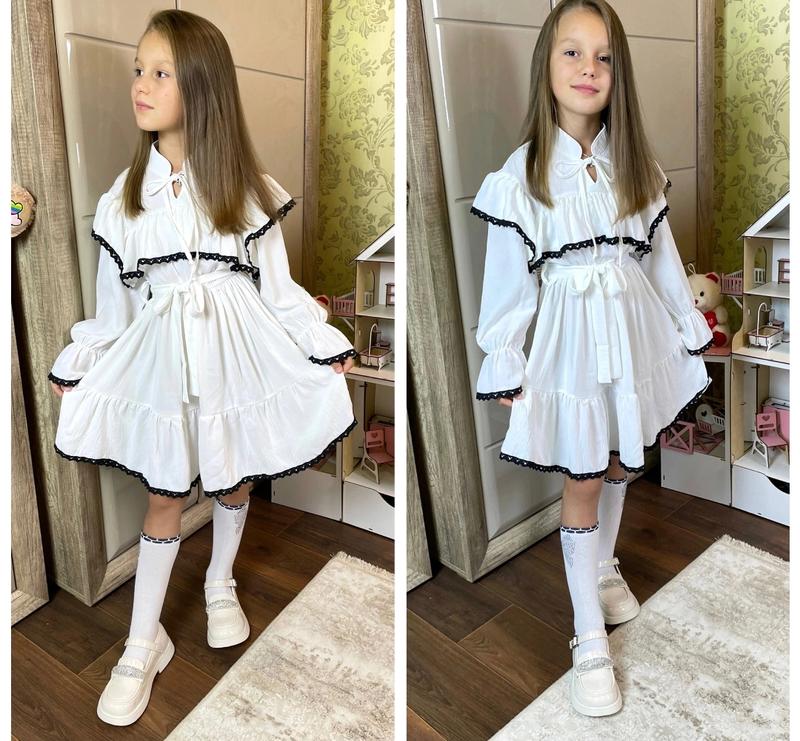 через кнопку купити тільки повна оплата!!! Стильна гарна сукня для красунь 💗 Тканина креп-жатка високої якості + мереживо, зав'язується під поясок Не просвічується Заміри: довжина/пог/рукав 134 - 74/39/45 140 - 76/40/48