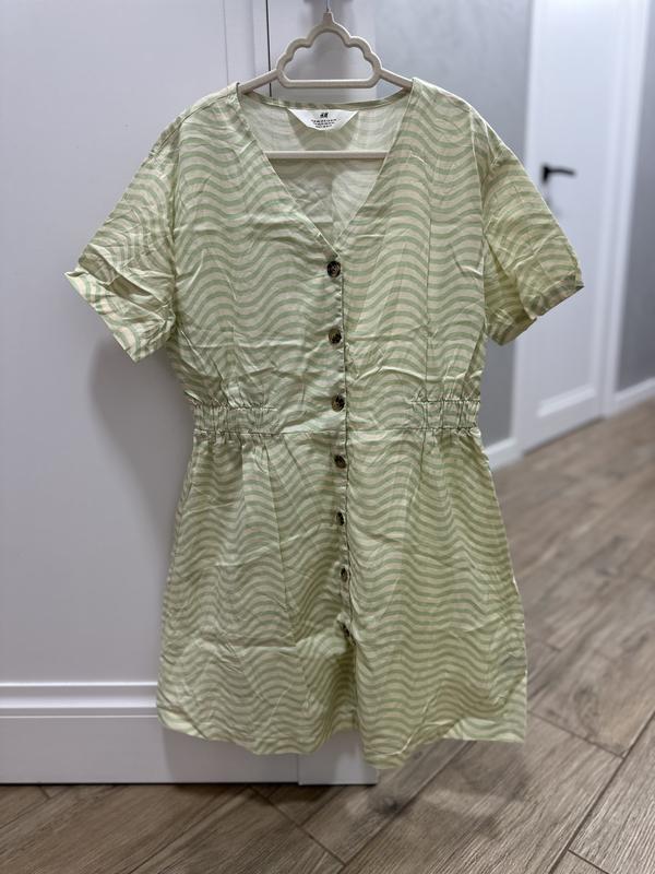 Легка котонова сукня від бренду H&M, натуральна тканина, ніжні кольоори, повністю застібається спереду на ґудзики, в поясі декоративні резинки, розмір 10-11р(146см), стан нової