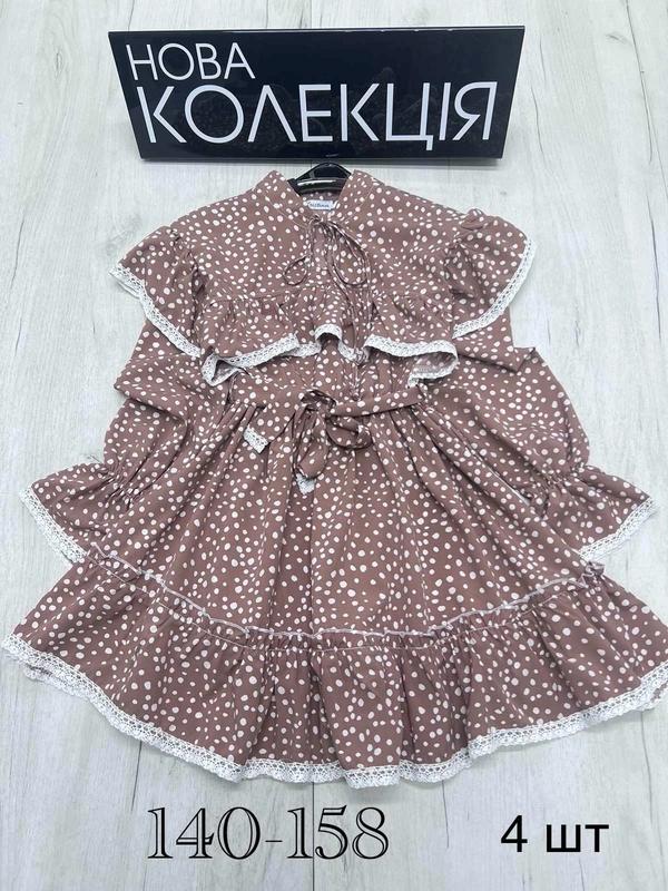 НОВИНКА! Стильна та модна сукня для дівчат. Сукня оздоблена мереживом. Рукавчик на резиночці, В поясі резиночка. Поясок в комплекті. Тканина - супер-софт. Заміри: 152 довжина - 77см, напівобхват грудей - 44см, рукав від горловини - 70см.