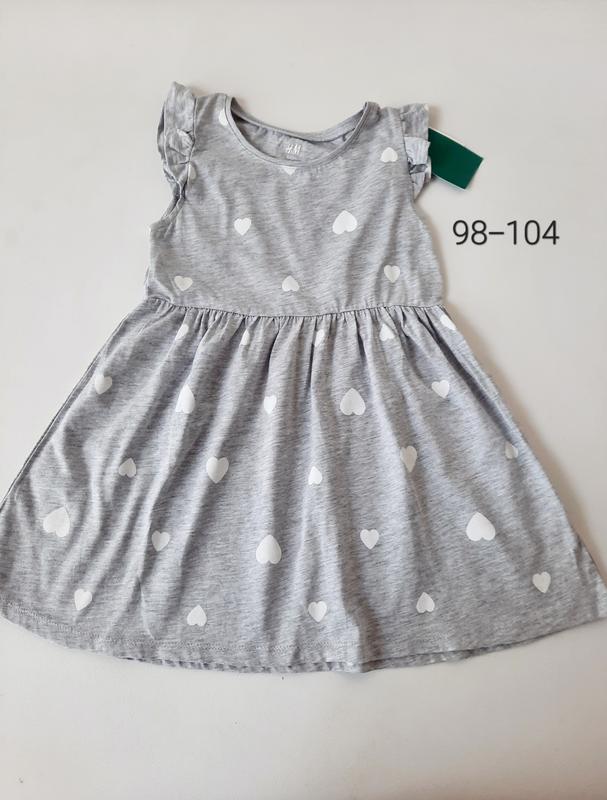 Летнее трикотажное платье H&M, отрезное по талии, с рюшами на плечиках. Размер 98-104