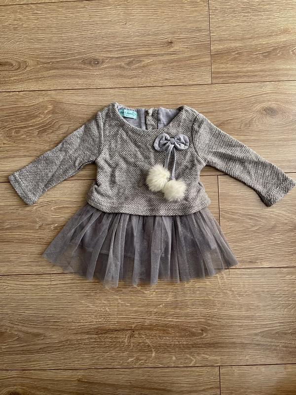 Дитяча сукня з помпоном і мереживом у хорошому стані Розмір 70 Колір темно-сірий Можливий самовивіз з міста Рівне